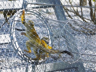 若為老虎、獅子等力量比較大的動物,我們盡量選擇直徑粗一些不銹鋼繩網,一般2.4mm即可滿足要求,3.2mm的更好一些。網孔可以稍微大一些。