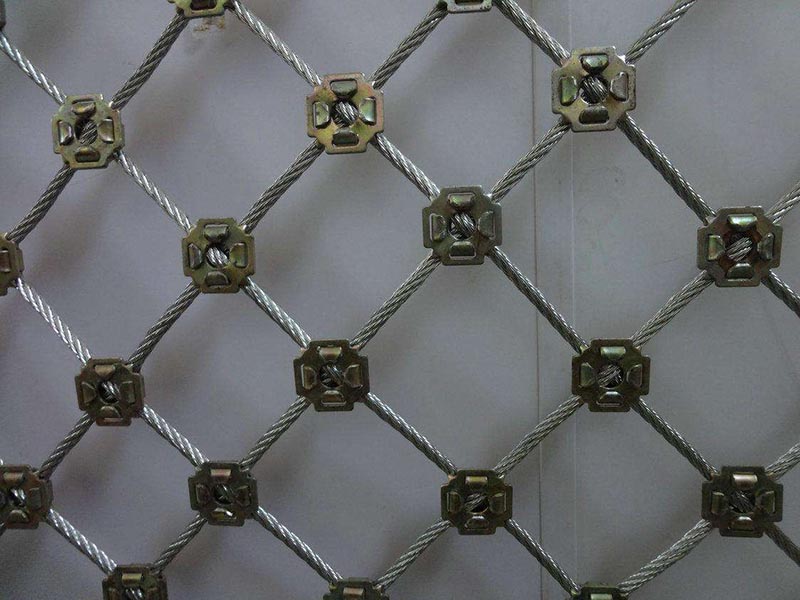 2)鋼絲繩網的編制 鋼絲繩網的編制應滿足以下要求: 上下交錯編織;編制成網的鋼絲繩不得有斷絲、脫絲現(xiàn)象;交叉節(jié)點處用扣壓件固定,接頭處用搭接件壓接,不得遺漏,鋼繩露出搭接件長度至少為10mm;編網時扣壓件和搭接件用機械壓接,表面不得有破裂和明顯損傷;網的形狀平整、繩不得有打結明顯扭曲現(xiàn)象。
