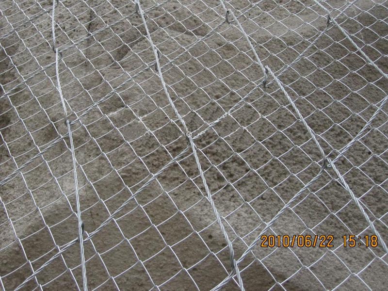 蜘蛛網(wǎng)又稱菱形邊坡防護(hù)網(wǎng),邊坡蜘蛛網(wǎng),蜘蛛網(wǎng)有別與其他的菱形主動(dòng)防護(hù)網(wǎng)。蜘蛛網(wǎng)的生產(chǎn)工藝是將兩根鋼絞線扭曲成符合要求的菱形網(wǎng)孔,然后根根相扣聯(lián)合在一起,他的安裝方法與勾花網(wǎng)的安裝方式類似。蜘蛛網(wǎng)的生產(chǎn)工藝更復(fù)雜,因?yàn)楹芏嗖襟E需要人工來(lái)操作。